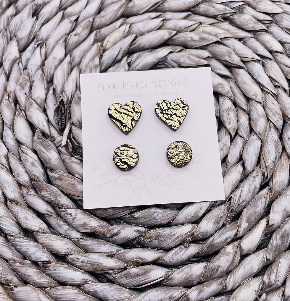Charcoal & Gold Heart and Round Stud Earring Set